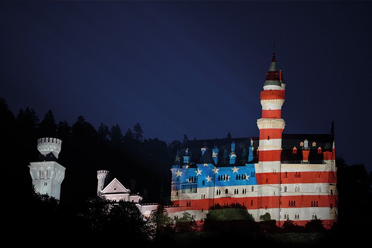 2. Kulturelle Relevanz: Menschen und Orte mit konkreten Bezugspunkten sind interessanter und relevanter als stereotype Platzhalter. Zeigen Sie wiedererkennbare Orte und identifizierbare Ereignisse statt zeitloser Repräsentanten im Nirgendwo. Ein Bild wirkt erst, wenn der Betrachter einen Bezug dazu aufbauen kann. Zeigen Sie zum Beispiel eine bekannte Szenerie in neuem Look: Zum G7-Treffen im Jahr 2015 erschien das weltbekannte Schloss Neuschwanstein jeden Abend in den Landesfarben eines anderen G7-Mitglieds.