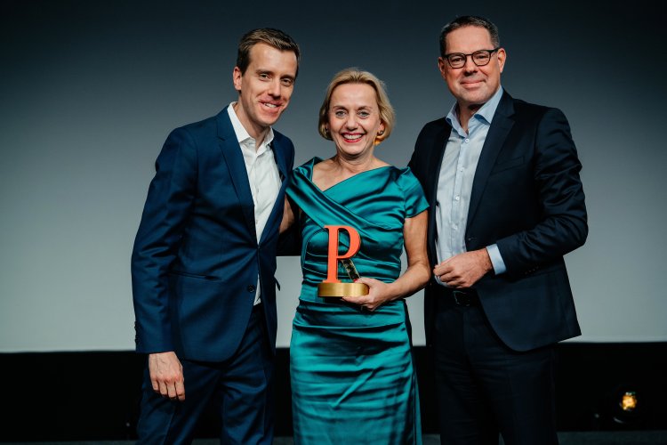 Bei den PR Report Awards 2025 wurde Susanne Marell (Schwarz Gruppe) als Kommunikatorin des Jahres ausgezeichnet. Die Laudatio vor mehr als 300 Gästen in Berlin hielt Schwarz-Chef Gerd Chrzanowski (rechts).